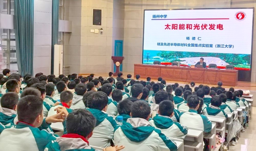 10月30日,我国半导体材料科学领域的泰斗、中国科学院院士浙江大学杨德仁教授回到家乡扬州,莅临百年名校江苏省扬州中学,为同学们带来了一场题为“硅材料与未来能源”的前沿科学讲座。此次活动不仅是一场高水平的学术盛宴,更是一次薪火相传的科学启蒙,在学子们心中播下了探索未知的种子。
