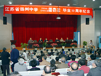 5月16日上午,扬州中学校园内鲜花盛开,彩旗飘扬,学校到处洋溢着欢庆的气氛。1951届、1956届高中(1953届初中)校友分别回母校举行纪念毕业55、50周年活动。