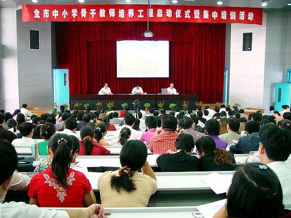 9月24日,全市中小学骨干教师培养工程启动仪式暨集中培训活动在我校信息中心报告厅隆重开幕。全市特级教师培养对象,市直学校学科带头人、中青年教学骨干、教坛新秀三个层次的培养对象和县(市、区)、市直学校负责人参加了会议。