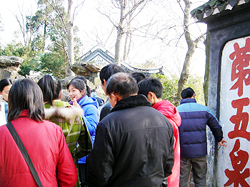 早就听说平山堂有眼泉叫做“天下第五泉”。初闻不觉好笑,“第五”有什么值得炫耀的?即使在前面冠以“天下”,也终不及“第一”“第二”来得响亮。看来是自知身份不够啊。