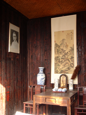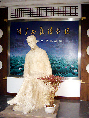 走进朱自清故居的老宅,能够感觉到的,是一种极其平常的气息。朴素的装饰,普通的几案,不过是普通的人家,在中落的家道中顽强生存的人家。沧桑的故居,向人们诉说的不是朱自清作为一位文学家、一位民主战士、一位教育家,而是作为一个普通人的点点滴滴。 当年,就在这间普通的老宅里,朱自清严格的父亲等待着儿子放学归来,等待“审视”儿子的作业功课,逢到好的评语,会“奖赏”他几粒花生米,几块豆腐干——后来朱自清回忆起扬州的豆腐干,有一种别样的回味,我想那不仅仅是豆腐干的香甜,更有一种对父爱的体会,对故乡的特殊情意。若是碰见不太理想的评语,这位严厉的父亲甚至会打得年幼的朱自清满屋子跑,以至于朱自清提起他的父亲,都会说父亲是一个“严厉的、刻薄的、脾气古怪的”老头儿。直到后来为人父,他才真正体会到父亲的爱,他说:当我打骂我的孩子的时候,我难道不喜欢我的孩子?后来,他写下了《背影》,写下了他对父爱的一种深层次的理解,寄托了自己发自内心的一片深情——从这里我们看到的是一个普通的儿子。